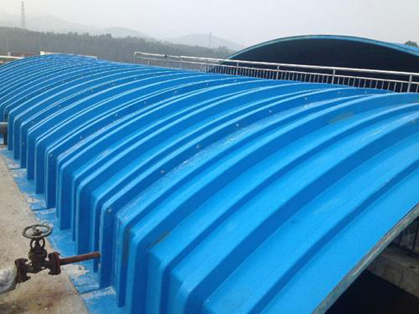 3、輕質(zhì)高強(qiáng)、安裝方便:玻璃鋼集氣罩比重僅為鋼制品的1/3至1/4,固化程度高,載荷負(fù)重大,強(qiáng)度高,適用于大跨度池體,同時(shí)蓋板可分為若干小塊,便于運(yùn)輸、安裝。