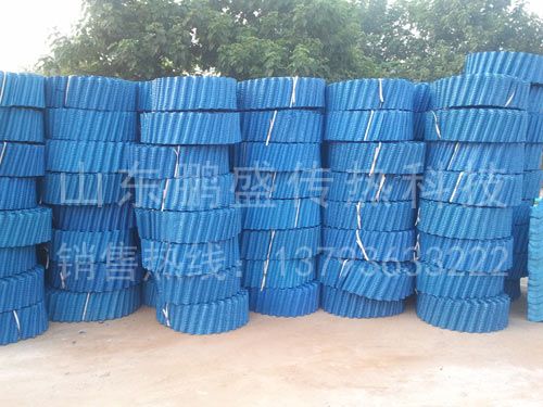 1、 性能:V波填料具有較好的綜合性能。通道面積大,粘接牢固,整體組裝鋼度好,可廣泛應(yīng)用于工業(yè)冷卻塔。